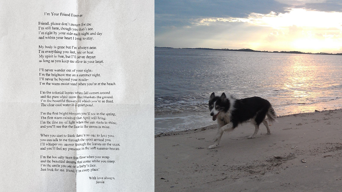 A year after her last dog, Jessie (right), passed away, Tamara’s veterinarian sent her this letter from Jessie, which she described as a basic poem from a dog to their owner after they've passed. “I bawled. I cried so hard, but it was the sweetest thing,” Tamara told TOC.