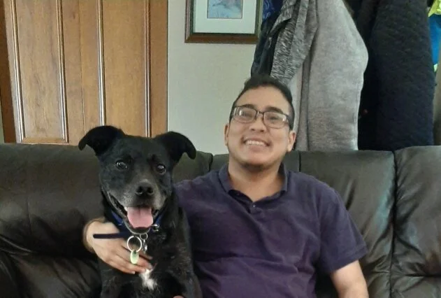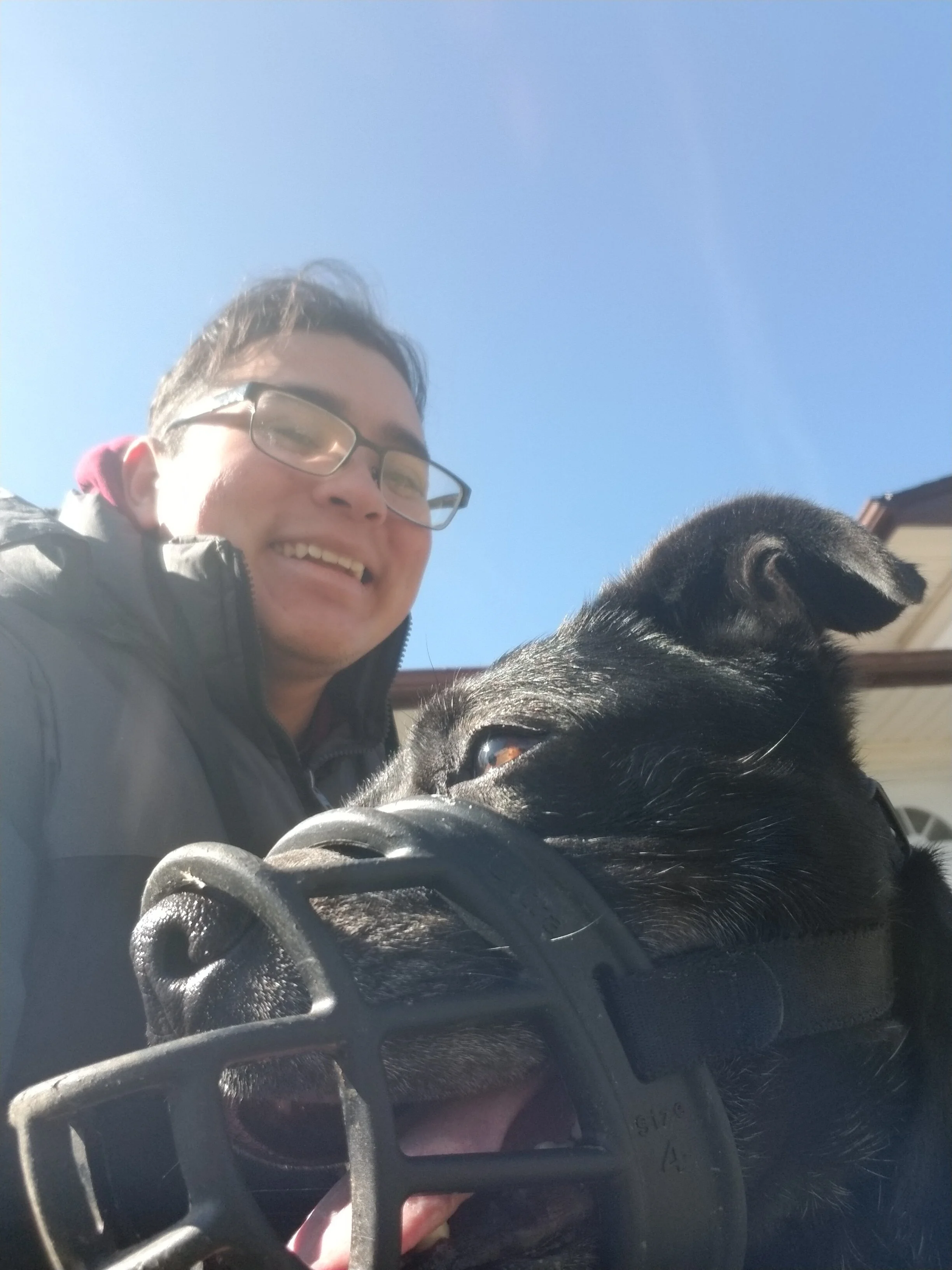 It was really hard. The reason he is reactive was because of the neighborhood we lived in when he lived with me, so I always feel bad about that. He was under a lot of stress to protect me. I didn't do anything about his reactivity for a while, until I found supportive groups online for reactive dogs. I learned how to train him, how to properly muzzle him, and he is making great progress. I hope he inspires other dogs out there who have fear-based reactivity. I used to feel anxious when walking him, but I don't anymore now that he has a muzzle. I don't care what other people think, I am focused on making him comfortable on his walks. When he reacts, I try to gently lead him back to me with treats and tell him to lay down. One day a dog was off leash (illegally) and ran up to Vincent on a day he was not muzzled. Vincent bit the other dog. The owner said it was her fault, but when I got home I cried because I knew if he did it to someone else he could seriously hurt them and he could be put down. So he has been muzzled every walk since. He's a good boy and enjoys taking treats from his muzzle. He is still working on his reactivity, but recently people outside said what a good boy he was. That made me really happy.
