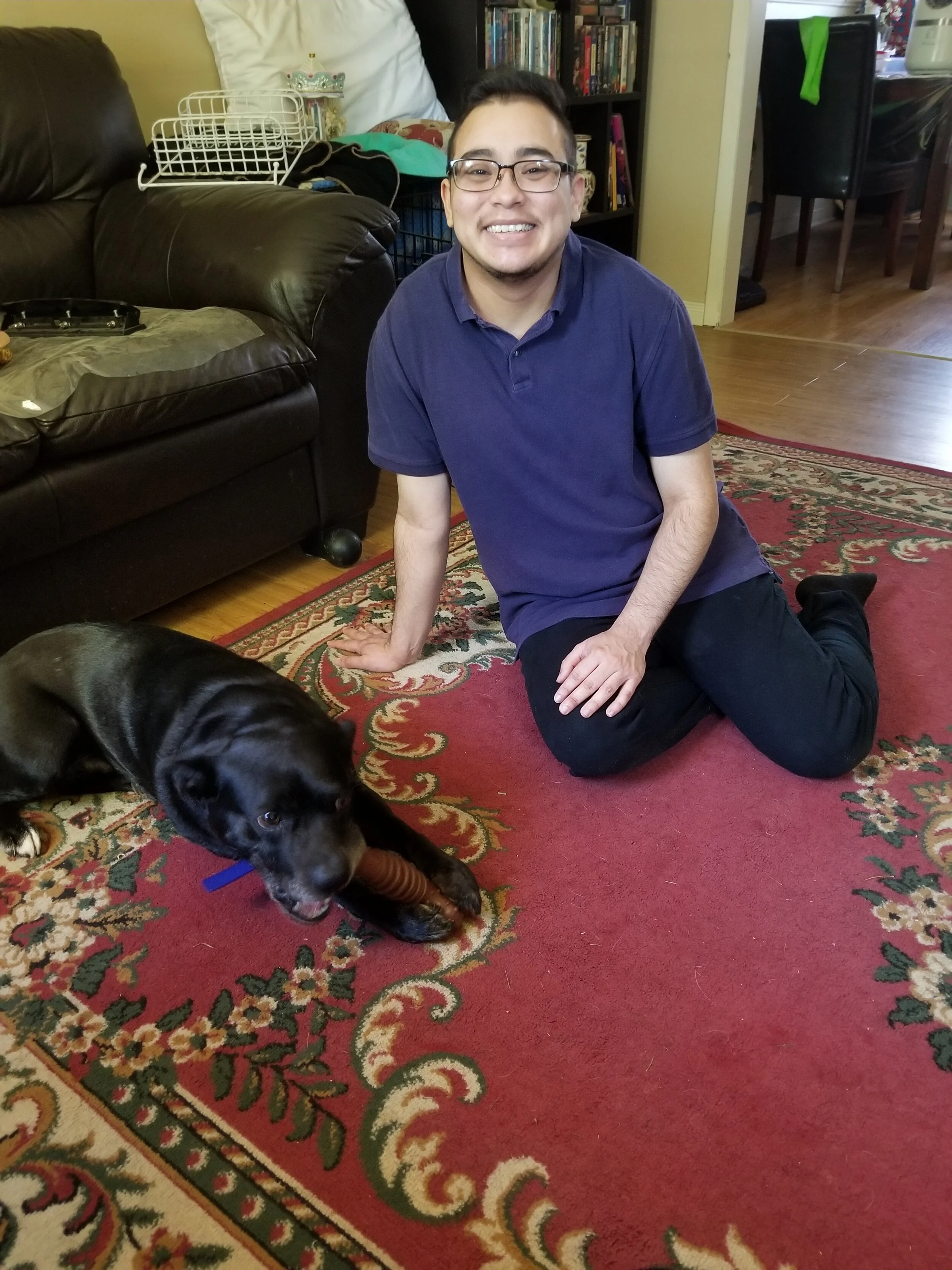 My name is Christopher, or Chris for short, and I am a transgender queer male in my early twenties. I came out when I was 16, and it was a hard transition for everybody. Vincent always seemed to recognize me and my voice, no matter how much I changed. I am called his "papa" and he actually responds to that word and looks around for me. I study psychology at university, and I love all dogs very much! I am passionate about helping others because I have been through a lot of mental health struggles. I am passionate about reactive dogs because it is a community that needs a lot of support and has been so welcoming to Vincent and me.